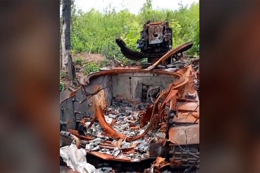 В "Акацию" попал российский боеприпас, после чего боевая машина взорвалась. У нее полностью развалилась башня, верхняя часть корпуса отсутствует. Удивительно, но относительно целыми остались элементы ходовой части.