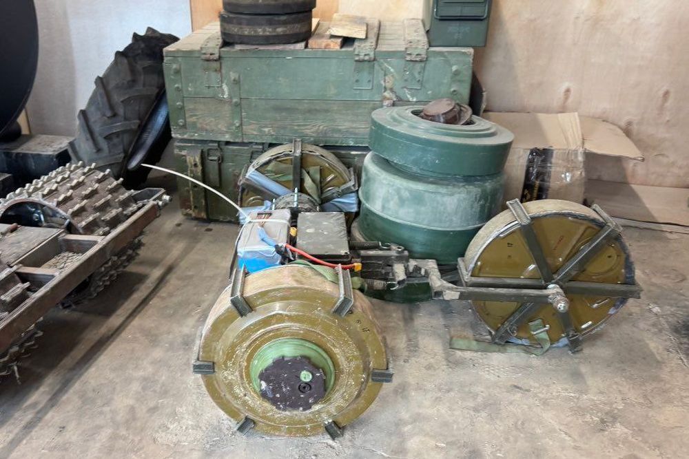 Опубликовано фото украинского наземного дрона-камикадзе, передвигающегося на противотанковых минах ТМ-62.