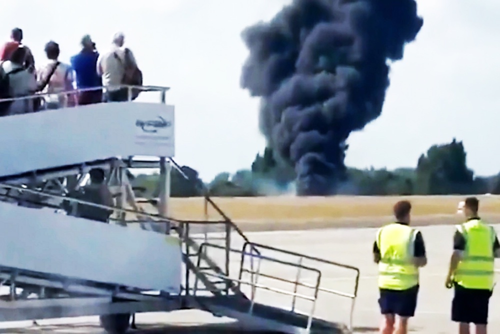 Направлявшийся в Нидерланды Beech B200 Super King Air упал сразу после взлета. Очевидцы рассказали, что видели "огромный огненный шар" и черный дым.