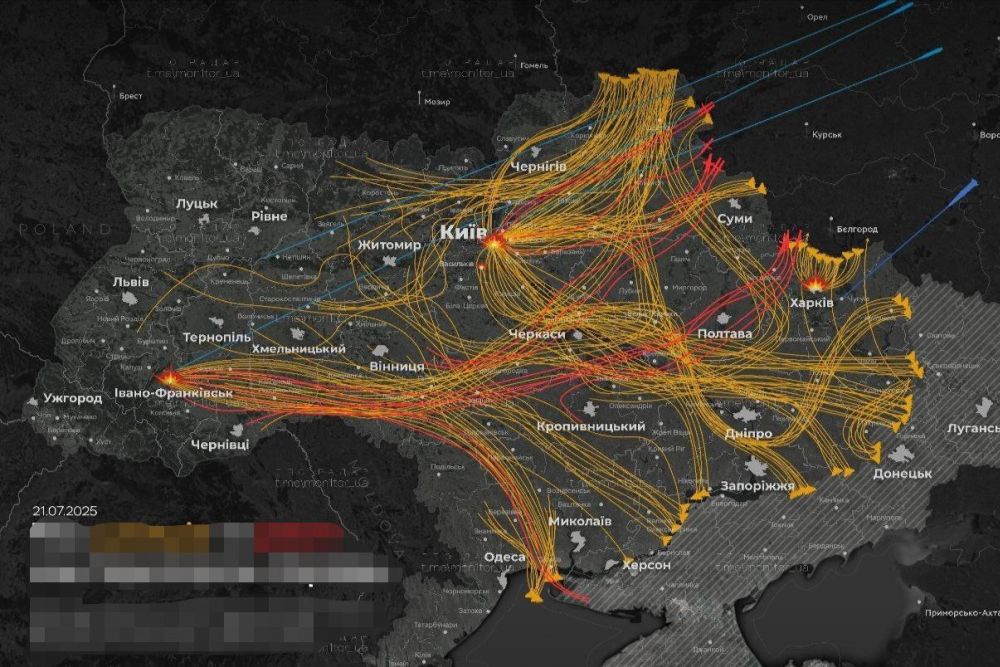 Наконец, "Герани" атаковали по всей линии фронта. Затейливо петляя, они в итоге ударили по военным целям в Ивано-Франковске, Киеве и Харькове.