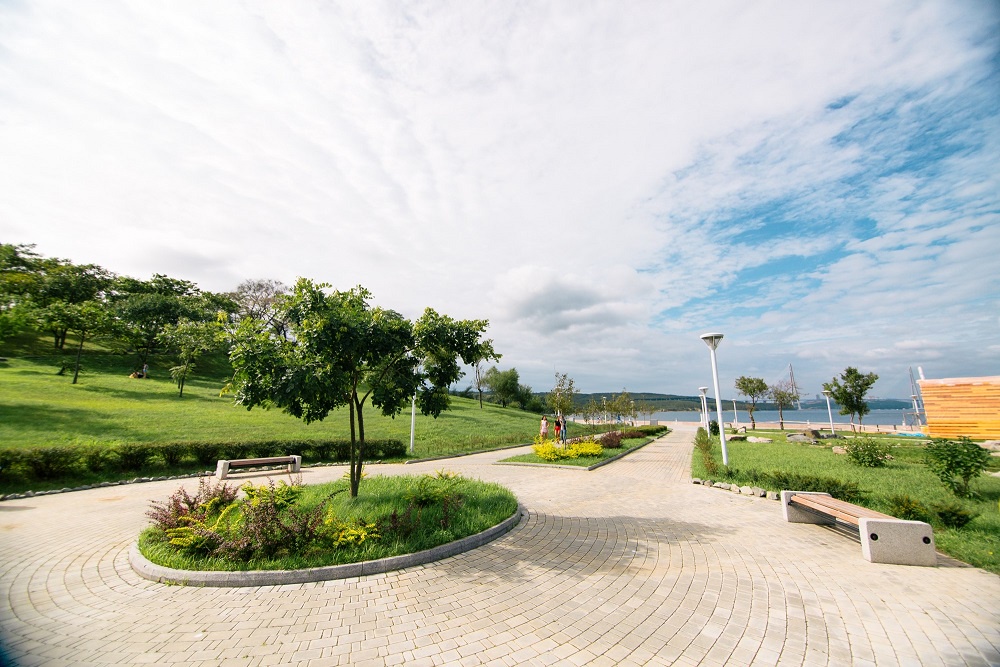Спортивная и парковая зоны в кампусе занимают 55 гектаров, там находятся теннисные корты, площадки для занятий баскетболом и волейболом, футбольный стадион, способный вместить несколько тысяч зрителей, тренировочные поля, пешеходные и велодорожки, главная жемчужина парка - набережная бухты Аякс протяженностью около полутора километров - излюбленное место отдыха студентов, владивостокцев и гостей города.