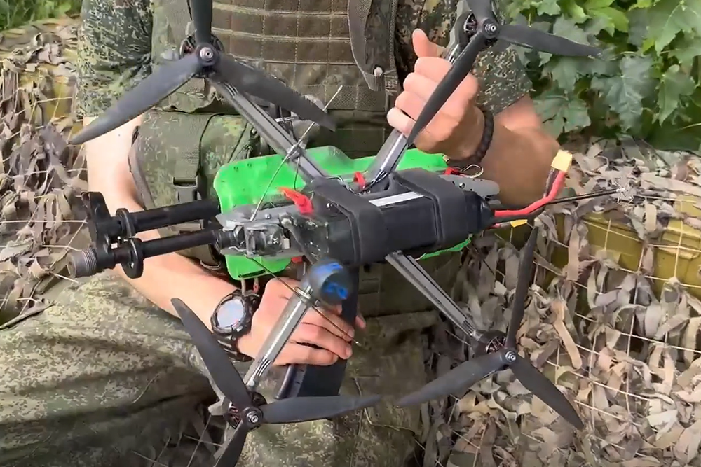 Об этом ТАСС рассказал военнослужащий батальона с позывным Ланцет. Это 10-дюймовый FPV-дрон с креплением для укороченного варианта автомата Калашникова. Он отлично сбивает гексакоптеры ВСУ, в том числе и типа "Баба-Яга" с подвешенными к ним боеприпасами - 82-миллиметровыми минами.