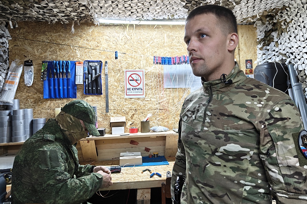 В блиндаже еще несколько довольно просторных комнат. В одной собирают по двадцать боекомплектов для БПЛА в день. В другой - пункт управления. "Депутат" показывает - на этих вот мониторах все, что сейчас происходит по то сторону фронта. Наши дроны-разведчики как ястребы кружат там 24 на 7.