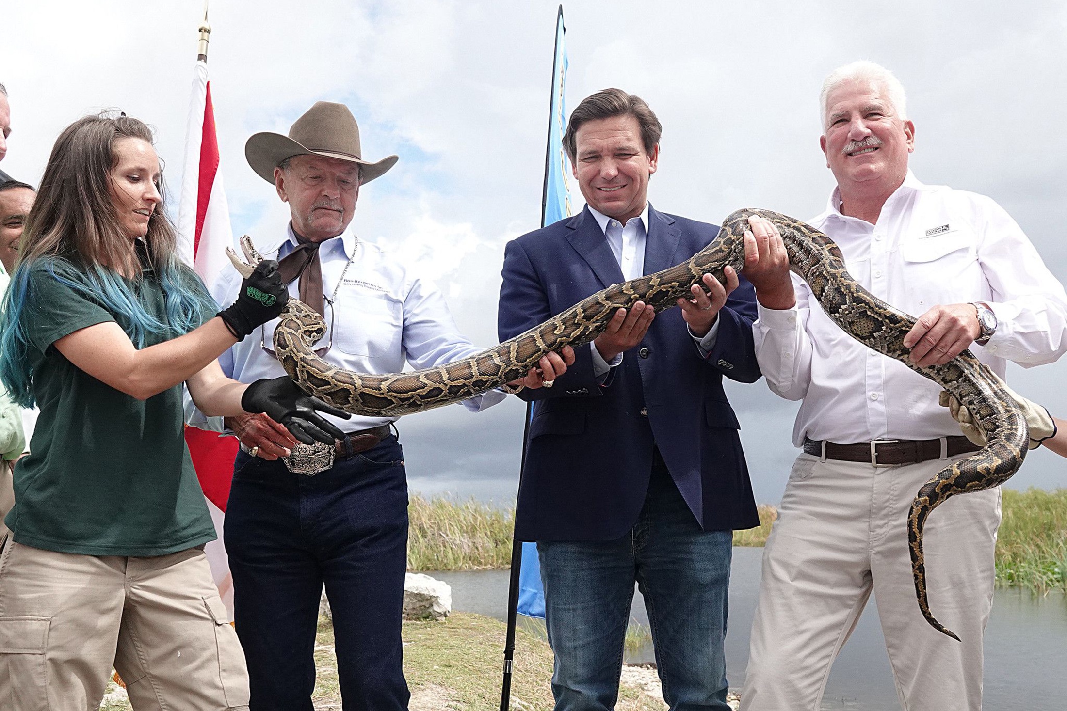 Бирманский питон, неместный вид для Соединенных Штатов, был впервые зарегистрирован во Флориде в 1990-х годах. С тех пор его популяция, благодаря подходящим для змей климатическим условиям, возросла в геометрической прогрессии, хотя официальные лица отказываются назвать точное количество особей в популяции. По словам независимых экологов, количество бирманских питонов в штате составляет не менее трех тысяч.