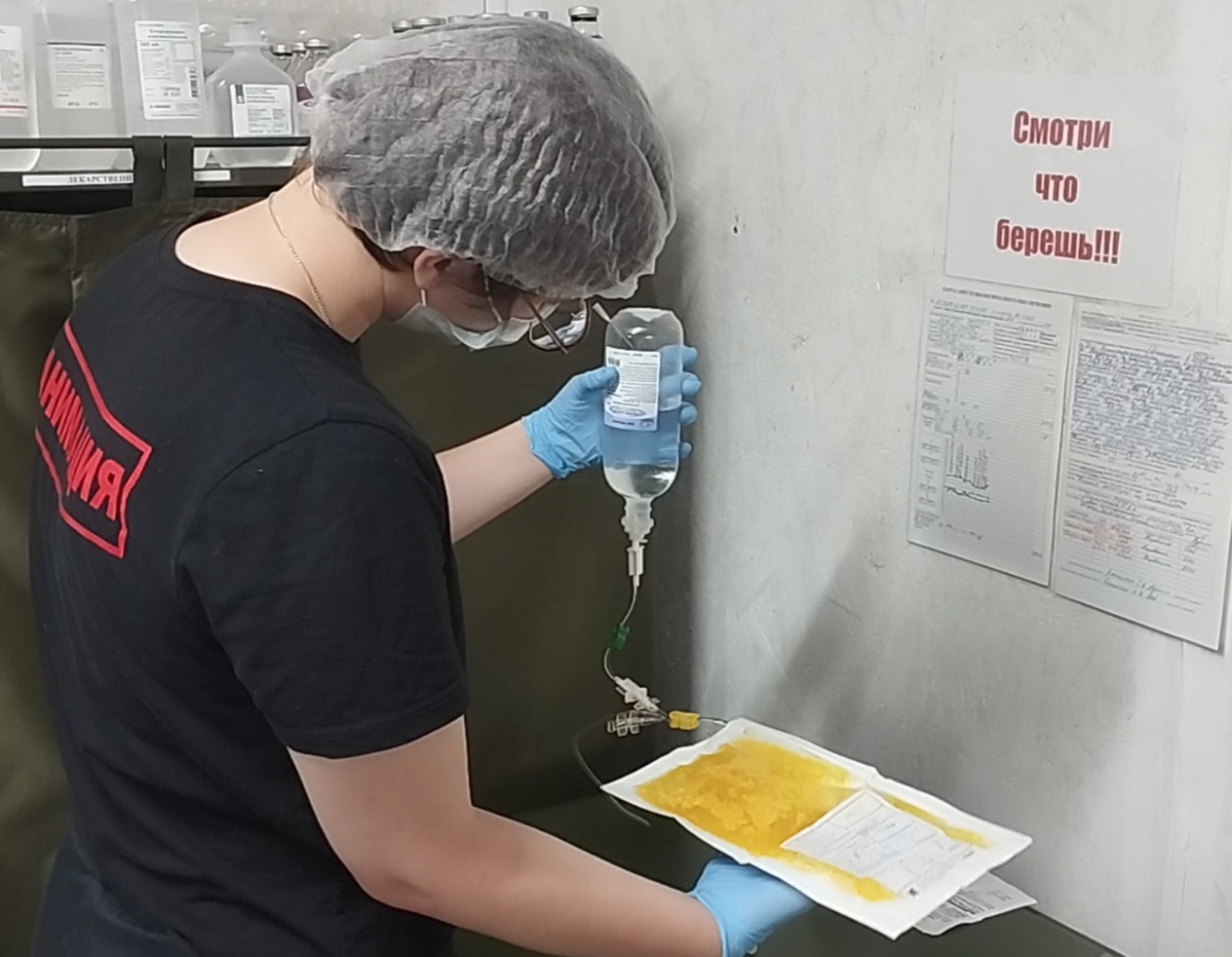 Сегодня уже можно подвести некий итог: за полтора года медицинским подразделением ВДВ внесен большой вклад в дело оказания помощи раненым - с момента развертывания и по настоящее время специалисты круглосуточно оказывают квалифицированную медицинскую помощь с элементами специализированной. В непосредственной близости от линии боевого соприкосновения, в полевом госпитале используется в том числе лиофилизированная (сухая) плазма крови, преимущество которой в том, что она не требует особых условий хранения, устойчива к механическому воздействию и проста в транспортировке, а после регидратации (разведения) готова к трансфузии уже через несколько минут. Особенно важна такая плазма в боевых условиях, в ходе эвакуации раненых штурмовиков, когда требуется срочно восполнить большую кровопотерю.