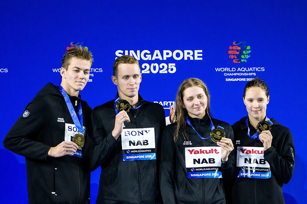 В составе команды в финале выступали: Мирон Лифинцев, Кирилл Пригода, Дарья Клепикова и Дарья Трофимова. Наши спортсмены показали время 3 минуты 37,97 секунд в финальном заплыве - это новый рекорд первенств планеты. Серебро досталось китайским пловцам (3.39,99), замкнули тройку лидеров канадцы (3.40,90).