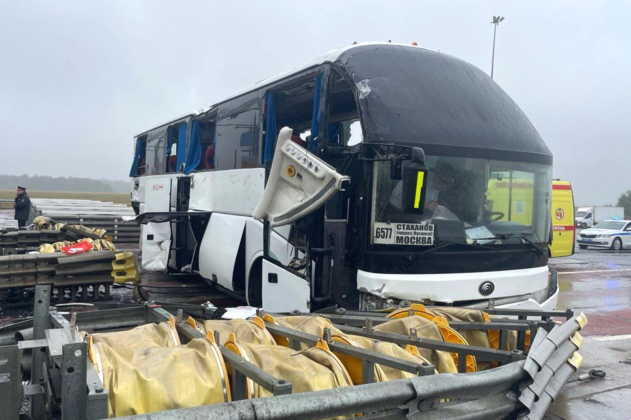 ДТП произошло сегодня на 228-м километре трассы М-4 "Дон" в Киреевском районе. Автобус, по предварительным данным, не справился с управлением в условиях густого тумана, в результате чего врезался в опоры пункта взимания платы (ПВП). Внутри были 48 пассажиров, из них 39 пострадали.