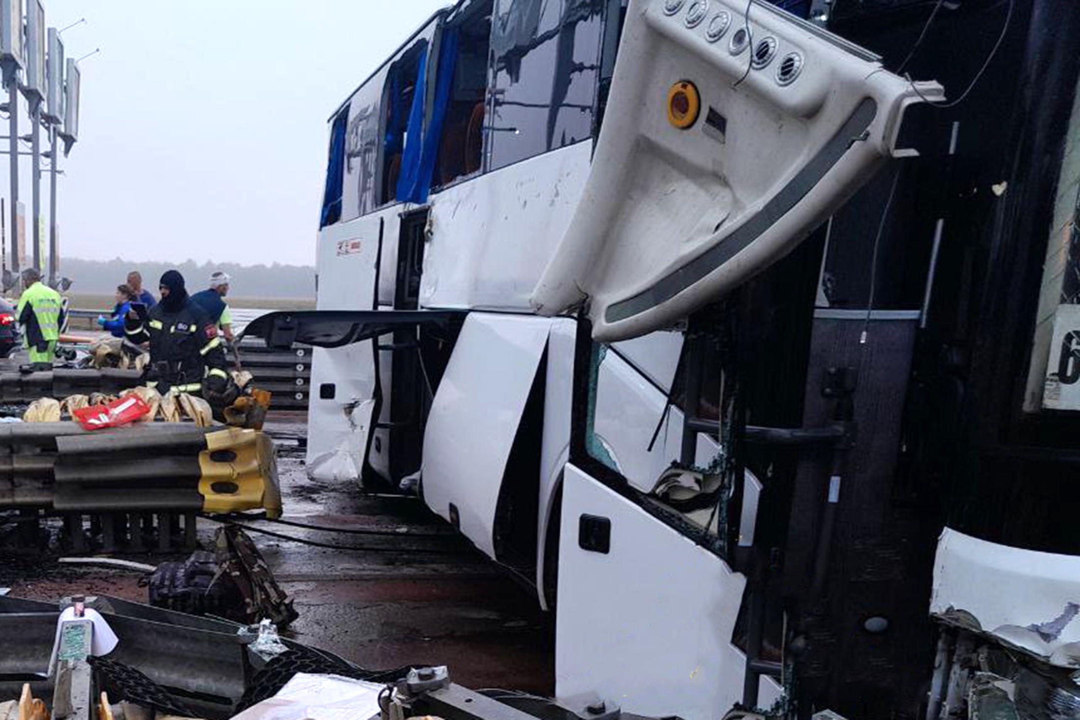 По предварительным данным, причиной ДТП стал сильный туман. На текущий момент известно о более чем 30 пострадавших, в их числе четыре ребенка. Всего в автобусе находилось 48 пассажиров.