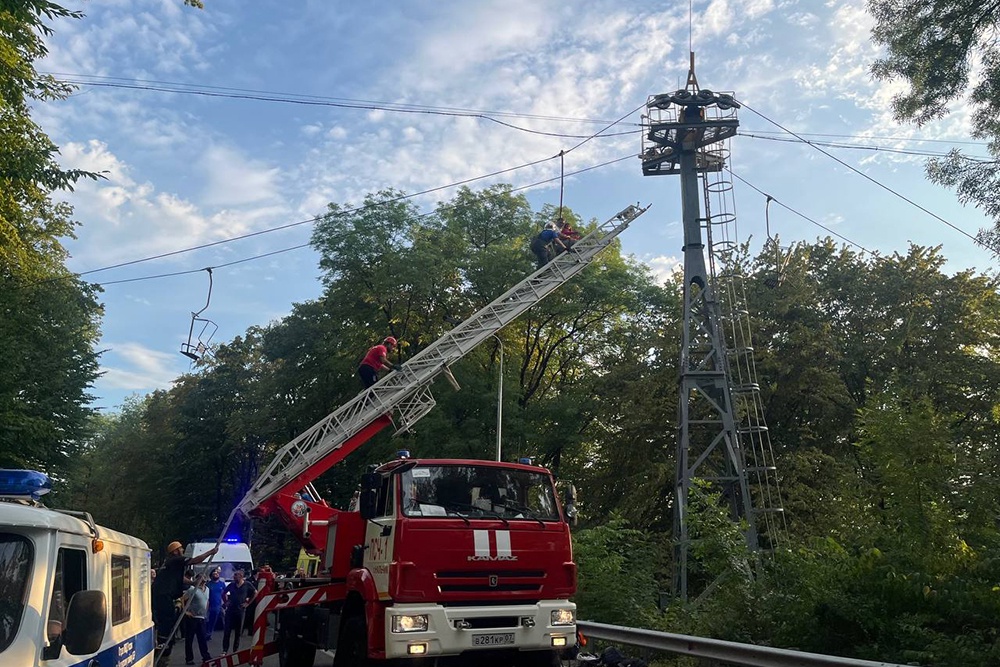 К канатной дороге подогнали пожарные машины, спасатели по автолестницам поднимались, чтобы снять людей с кресел. В некоторых местах, особенно над рекой Нальчик, где проходит канатная дорога, ставили обычные лестницы и забирались по ним.