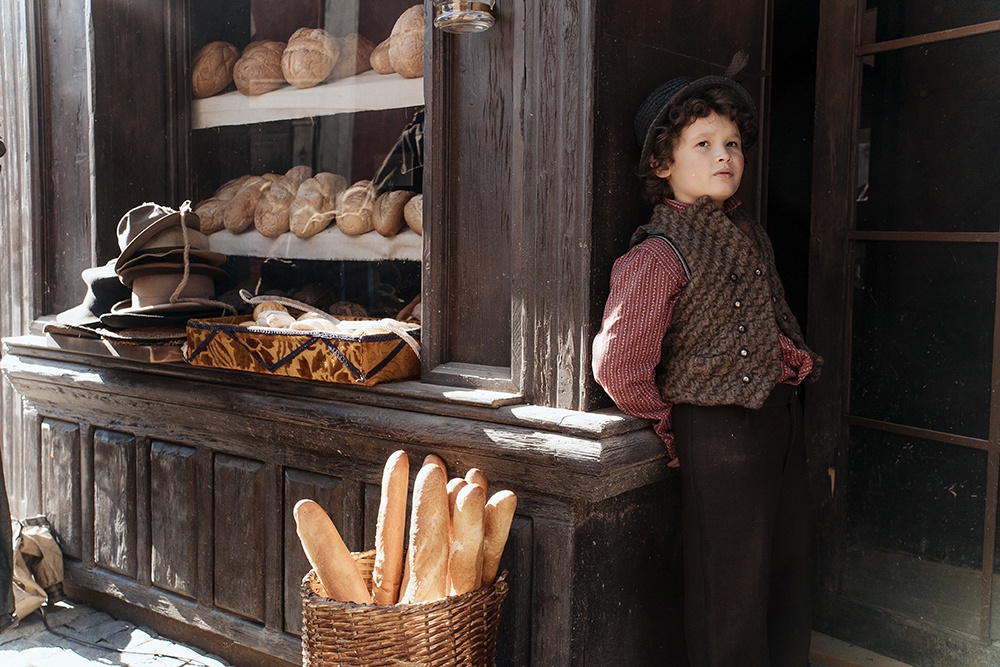 В черно-белом костюме Пьеро (Степана Белозерова) много оборок, в которых застряла средневековая пыль. Воротник был сделан из старинного народного Бретонского воротника, который нашли именно в Бретани.