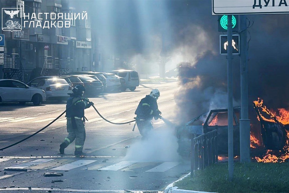 Далее дрон ВСУ ударил по движущемуся легковому автомобилю в Белгороде, он загорелся. Пострадала супружеская пара, мужчина - в тяжелом состоянии. Обоих отправили в больницы. Также известно и о третьем пострадавшем, он доставлен в медучреждение.