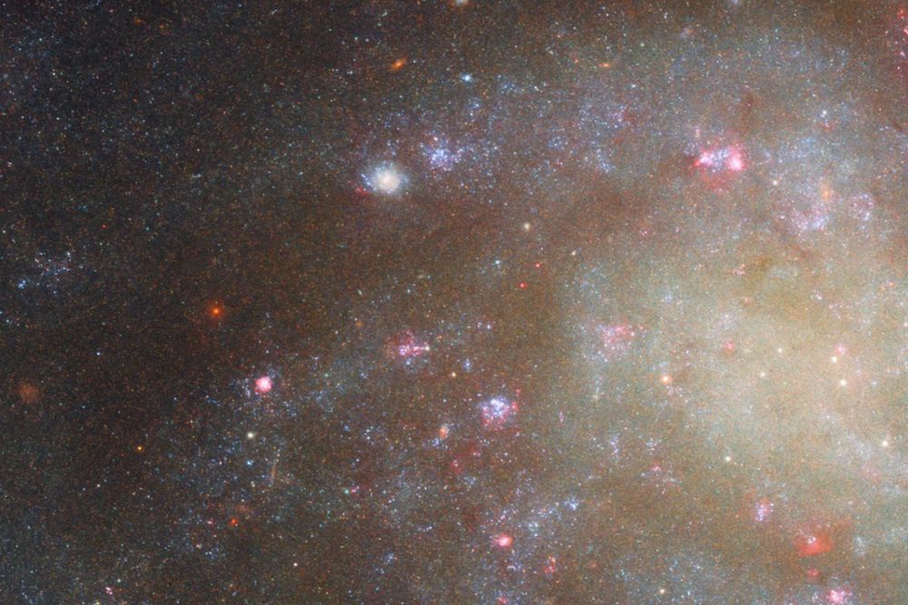 Для получения изображения учёные объединили данные двух программ. В рамках первой телескоп исследовал спектры 50 близких галактик от ультрафиолета до ближнего инфракрасного диапазона. Вторая была сосредоточена на линии излучения H-альфа, связанной с областями активного звездообразования. Совмещение информации позволило разглядеть розовые облака газа - места рождения новых светил.