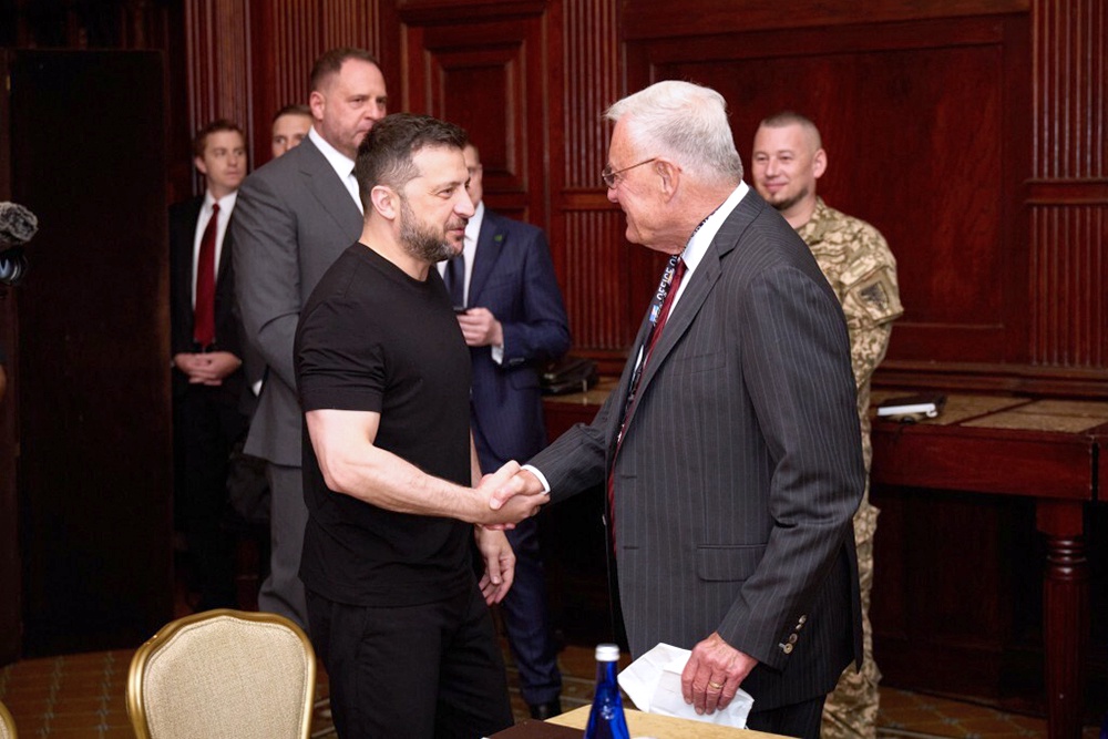Судя по прикрепленному видео, на встрече с Келлогом Зеленский был одет в черную футболку и штаны, несмотря на то, что, по данным источников портала Axios, в Белом доме интересовались у украинской стороны, наденет ли глава делегации костюм.