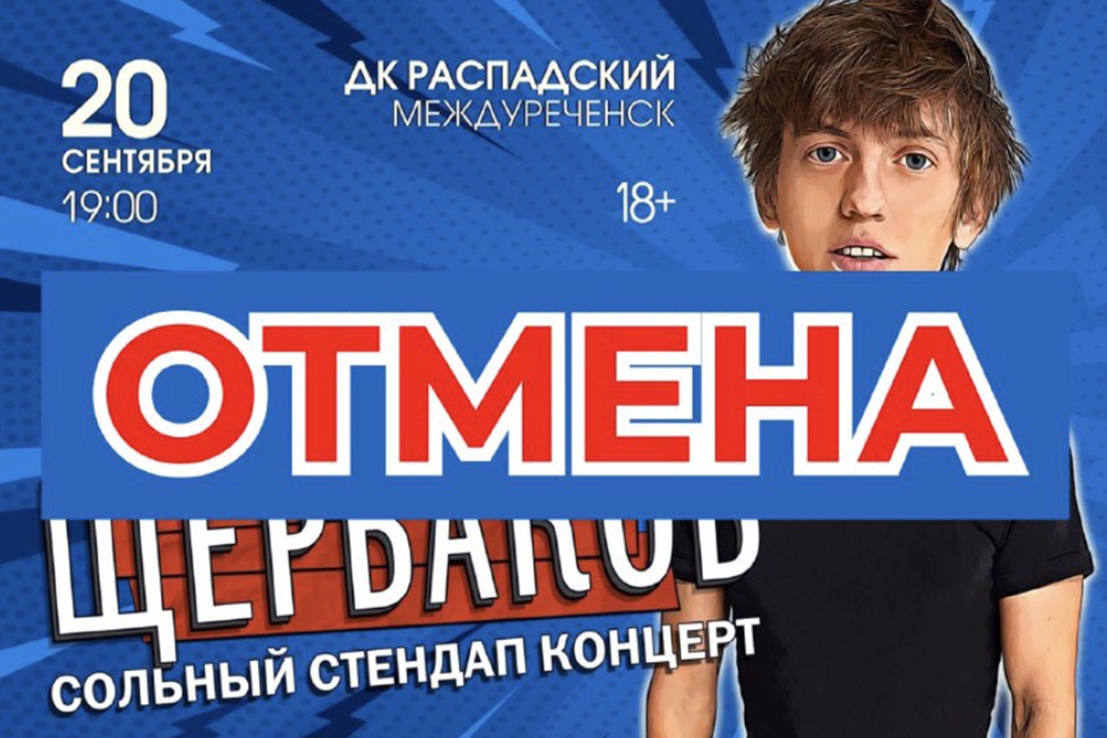 В городе Междуреченск Кемеровской области отменён концерт стендап-комика Алексея Щербакова.