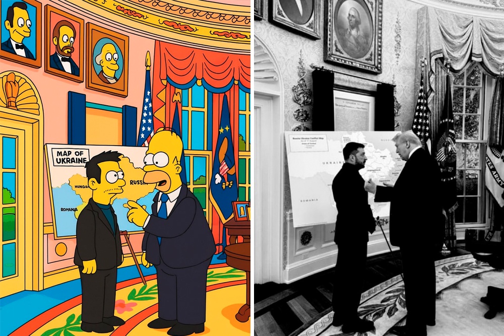 Дмитриев опубликовал два снимка. Один из них был сделан журналистами в Овальном кабинете во время прошедших 18 августа переговоров. На фото - Трамп и Зеленский стоят возле карты Украины и что-то обсуждают.