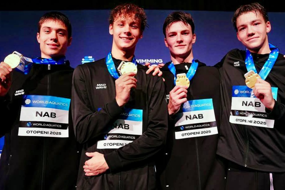 Михаил Щербаков, Роман Жидков, Егор Прошин и Георгий Злотников выиграли эстафету 4 по 100 метров вольным стилем с результатом 3 минуты 15,38 секунды, побив юниорский мировой рекорд. Второй в эстафете стала итальянская команда (отставание - 0,65 секунды), третьей - американская (1,68 секунды).