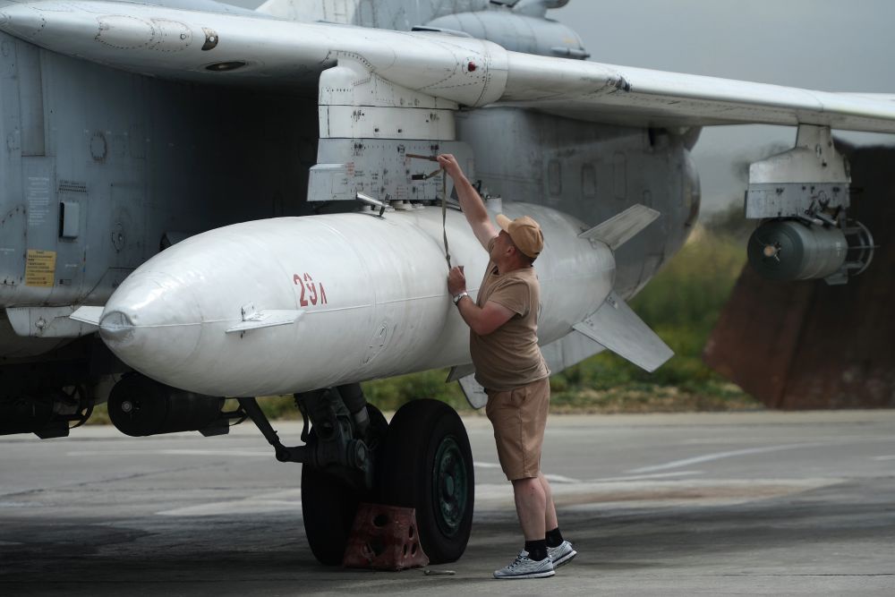 Тип боеприпаса не называется - судя по размерам смазанного от скорости движения силуэта на видео, это большая ракета (типа Х-101) или тяжелая бомба с УМПК.