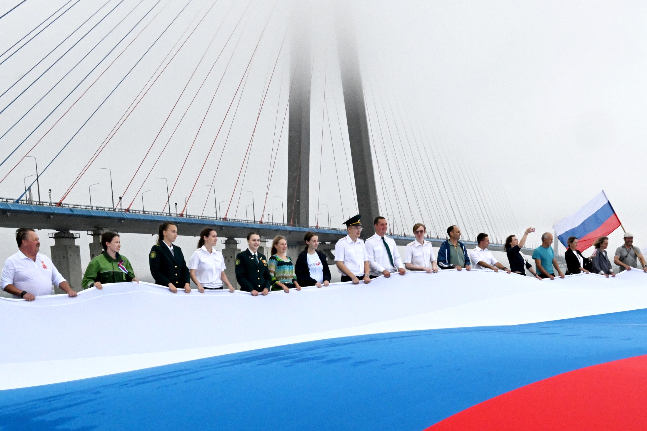 Как сообщает пресс-служба администрации Владивостока, на Новосильцевской батарее Владивостокской крепости, что на острове Русском, провели патриотическую акцию. На историческом месте торжественно развернули огромное полотно триколора. Акция символизировала единство народа и гордость за огромную страну. В мероприятии приняли участие представители молодежных сообществ и общественно-патриотических объединений города.
