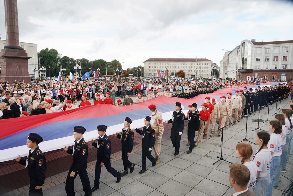 Программу открыли байкеры мотоклуба "Ночные волки", которые проехали с триколором по центру Калининграда. Следом за ними власти региона, общественники, школьники, кадеты, волонтеры и активные горожане вынесли на площадь Победы главный символ праздника - флаг России. В раскрытом виде он составил 80 метров в длину и 3,5 метра в ширину.