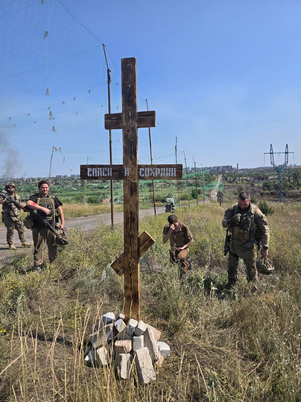 "Во время боевых действий церкви часто разрушаются, и мест, где бы верующие бойцы могли перекреститься, помолиться практически нет. Поэтому мы ставим поклонные кресты у дороги - помолился и с Богом пошел дальше", - рассказывает командир.