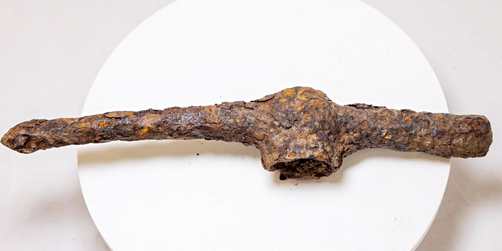 Один из них удивил археологов. Это массивный боевой чекан, превосходящий по размерам стандартные топоры-клевцы указанной эпохи. Он предназначен для пробивания брони врага. А главное - чекан сделан из железа, которое в те времена только начинало использоваться при изготовлении оружия.