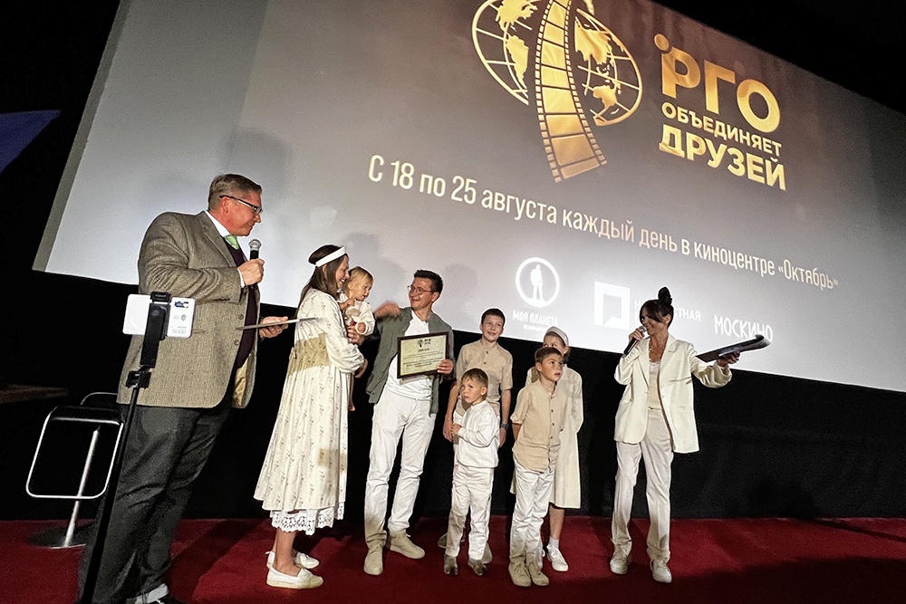 Кстати, насчет семей - создатели фестивального фильма "Русская свадьба Заонежья" - большая семья, и на сцену они вышли с грудным ребенком на руках.