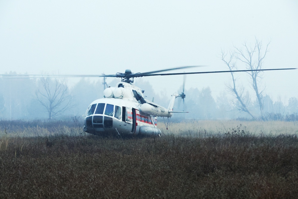 Два вертолета МИ-8 МЧС России прибыли на место возгорания в Крыму и начали тушить ландшафтный пожар.