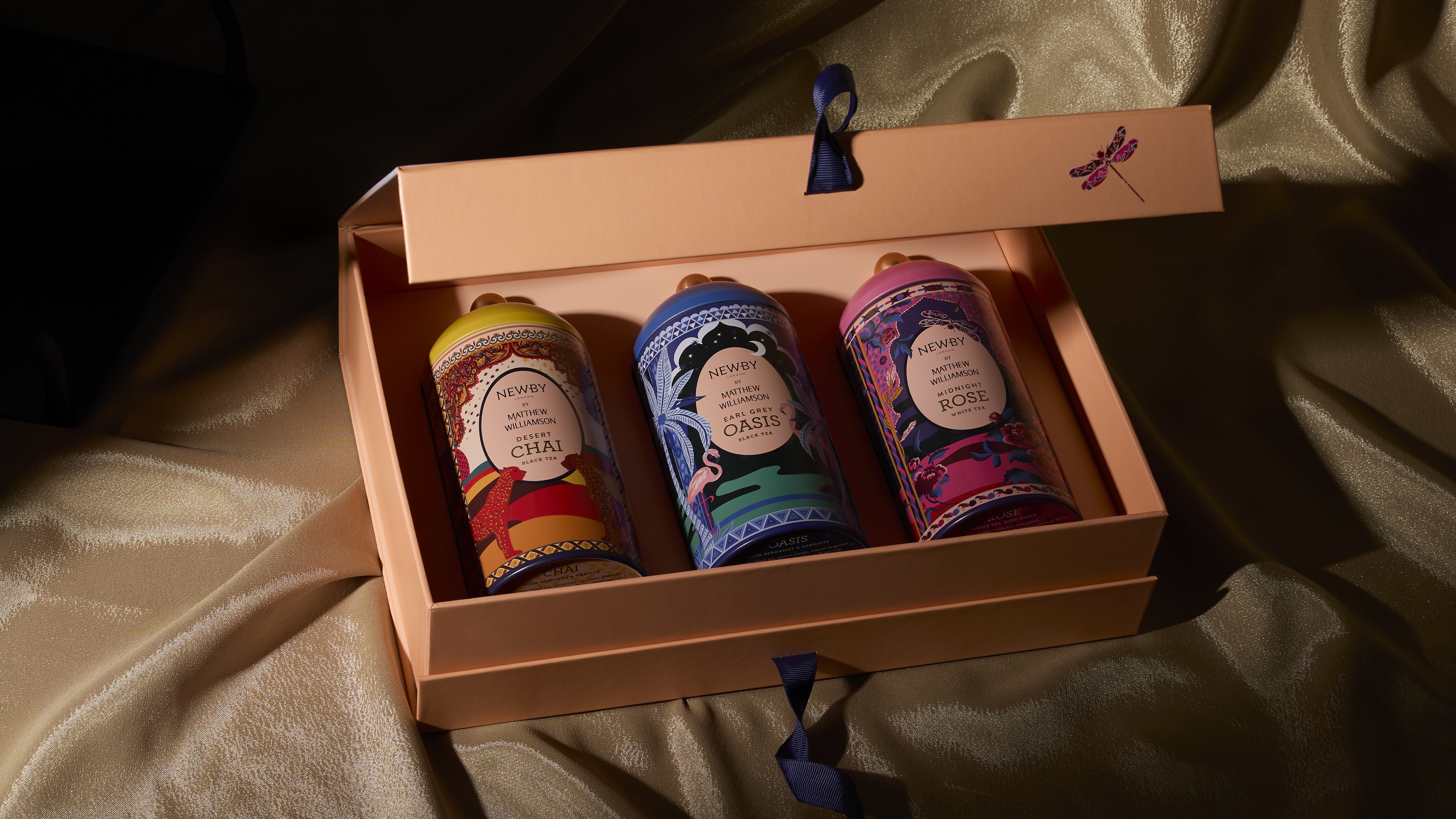Коллекция "Манящий Восток" была создана в коллаборации с известным британским модельером Мэтью Уильямсоном. Его вдохновение живописными пейзажами и колоритом Востока читается в ярком дизайне коллекции. В нейц тоже три вида чая: ароматный купаж "Роса пустыни" с нотками ванили и миндаля, нежный белый чай "Цветущая роза" с лепестками цветов и насыщенный "Эрл Грей Оазис» с кусочками абрикоса. Купажи доступны и по отдельности в подарочной упаковке, и в составе полного набора.