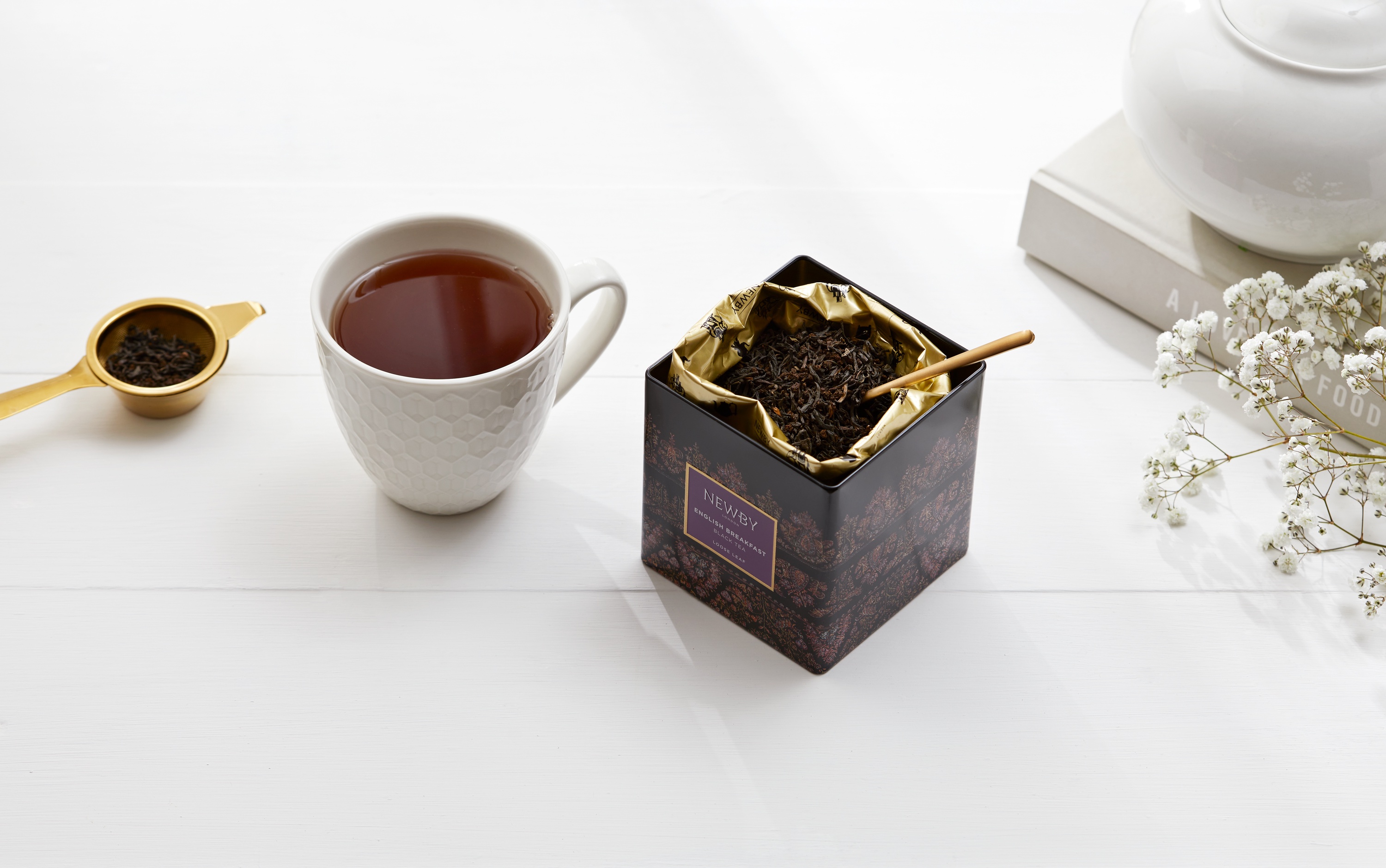 Дополнить традиционный букет можно ярким и вкусным подарком – чаем в стильной дизайнерской упаковке. Британская компания Newby Teas представила несколько таких решений. Авторские купажи в премиальном исполнении оценит каждый получатель, ведь качественный чай - универсальный напиток для любой ситуации.