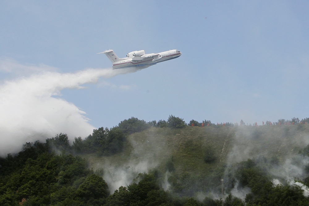 Для борьбы с мощным лесным пожаром привлечена авиация МЧС России: самолет-амфибия Бе-200ЧС и Ил-76, а также два вертолета Ми-8.