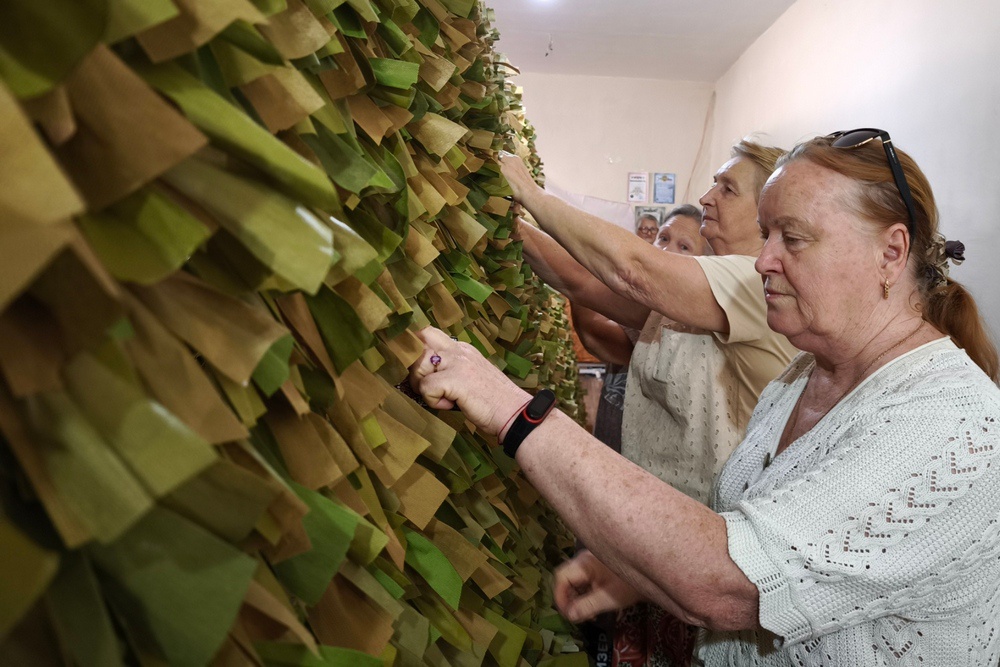Рыжий цвет ленты в маскировочной сети нужен, потому что природа уже расцветает красками осени. Их пока немного, поэтому к зелени колер осени подмешивают постепенно. Маскировочные сети - расходный материал. В боевой обстановке они уходят в огромном количестве. Прошел танк через кусты, все, сетка порвана, остались одни лохмотья, надо менять. Поэтому до глубокой осени их обновят еще не однажды. Женщины понимают, что от точности их работы зависят жизни ребят, поэтому всегда подбирают краски максимально близко к тому месту, куда уйдет изделие, и к календарю. Можно сказать, плетут своими руками полотна на тему "Времена года", только вот место им не в музее, а на передовой. Идут сети на все херсонское направление, а уж западный берег Крыма плотно укутан их руками.