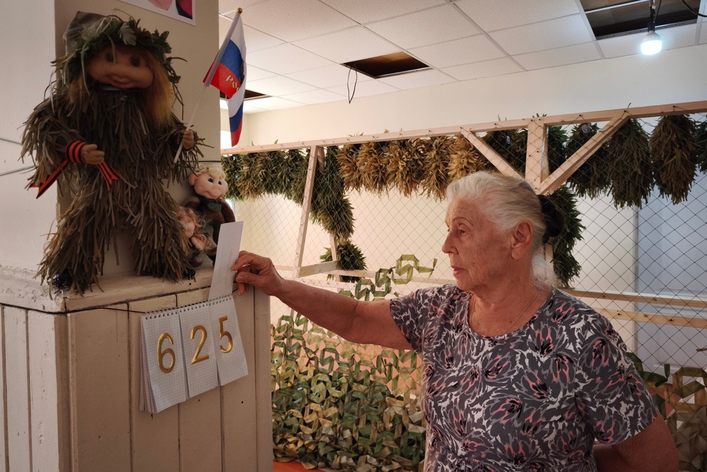 Только для морпехов из 810-й бригады женщины изготовили уже 200 маскировочных сетей. А всего за два с лишним года существования их группы сделали уже 624 сети. На стене висит их календарь-счетчик, и каждый день с него срывают два новых листка. А каждую сотню они отмечают бутылкой шампанского. Заслужили!