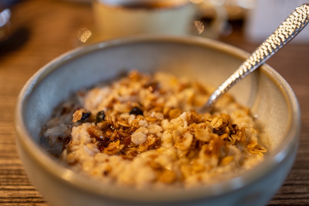 Напомним, что овсяная крупа (долгой варки - порядка 25 минут) содержит большое количество клетчатки, что крайне важно для микробиома человека. Кроме того, она способна выводить лишний холестерин. Киви содержит серотонин, влияющий на глубину сна, голод и эмоции. Миндаль богат полезными жирами, антиоксидантами, витаминами и минералами.