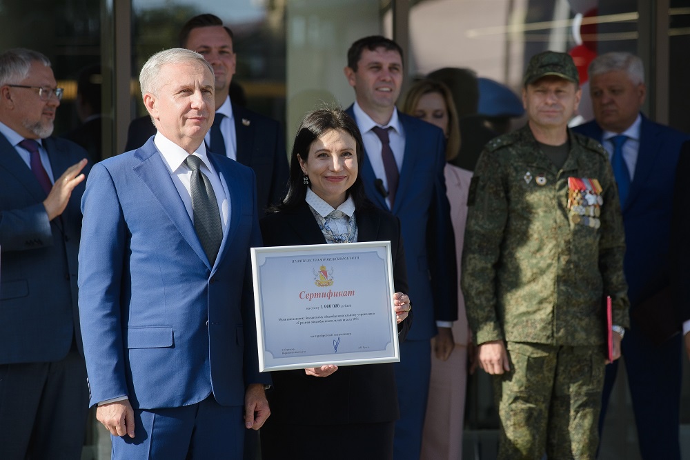 В ходе мероприятия врио главы региона передал руководству школы сертификат на один миллион рублей, предназначенный для приобретения оборудования. Кроме того, Трухачев лично осмотрел новую школу, посетив спортивные и учебные помещения, а также оставив пожелание учащимся на интерактивной доске.
