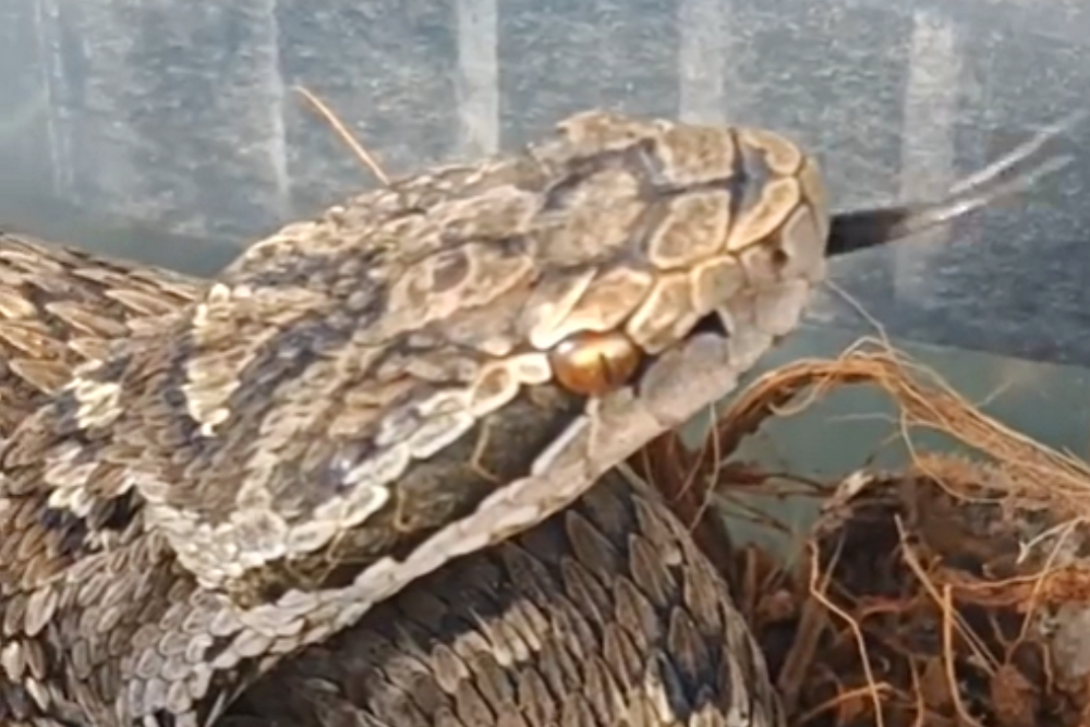 Щитомордника отпустили на волю, предварительно записав видео со змеей, трясущей кончиком хвоста для устрашения окружающих - так делают и гремучие змеи, у которых есть для этого специальная погремушка.