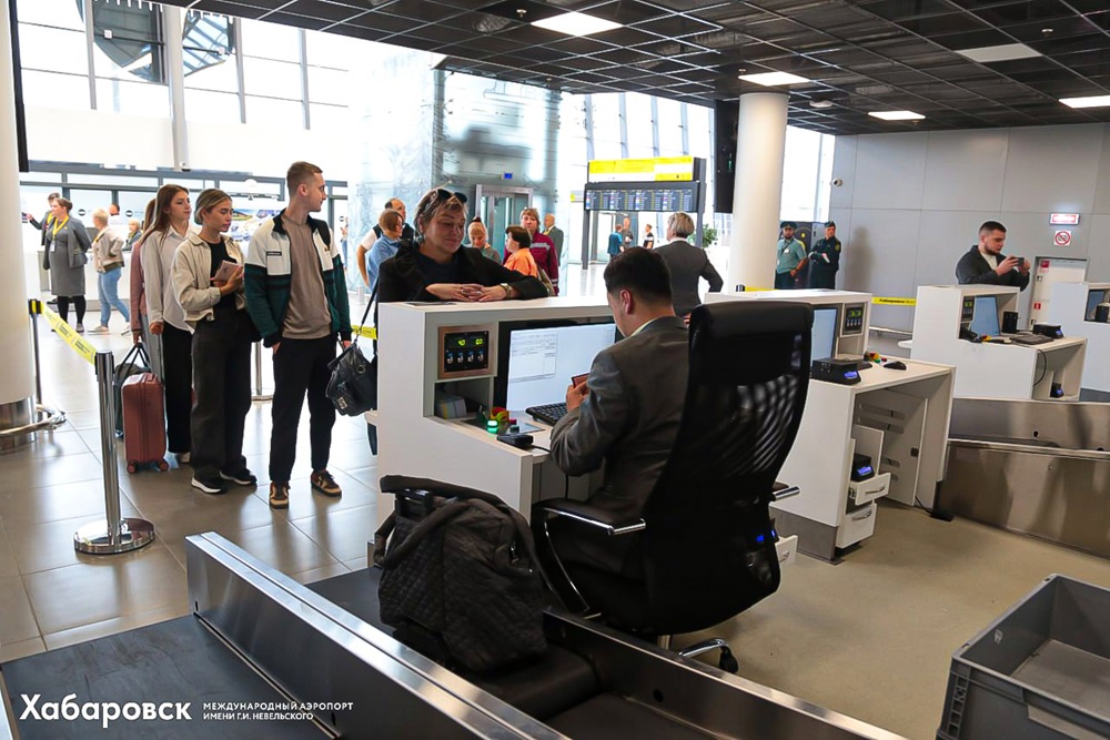 Накануне ВЭФ-2025 работу терминала протестировали "пассажиры" условного рейса Хабаровск - Шанхай. В роли вылетающих - местные студенты, которые пришли на репетицию, как и положено настоящим путешественникам, с полными чемоданами и документами. Вместе с работниками службы аэропорта и сотрудниками таможенной службы проверили, как функционирует весь технологический процесс от момента регистрации и обработки багажа до пограничного контроля. Тестовая посадка на рейс прошла успешно.