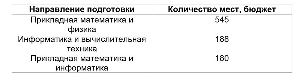 Каждый год число бюджетных и платных мест в вузе может быть разным. По данным приемной комиссии МФТИ и Вузопедии, в 2025 году в бакалавриате для первокурсников было выделено 1092 бюджетных места и 318 платных.
