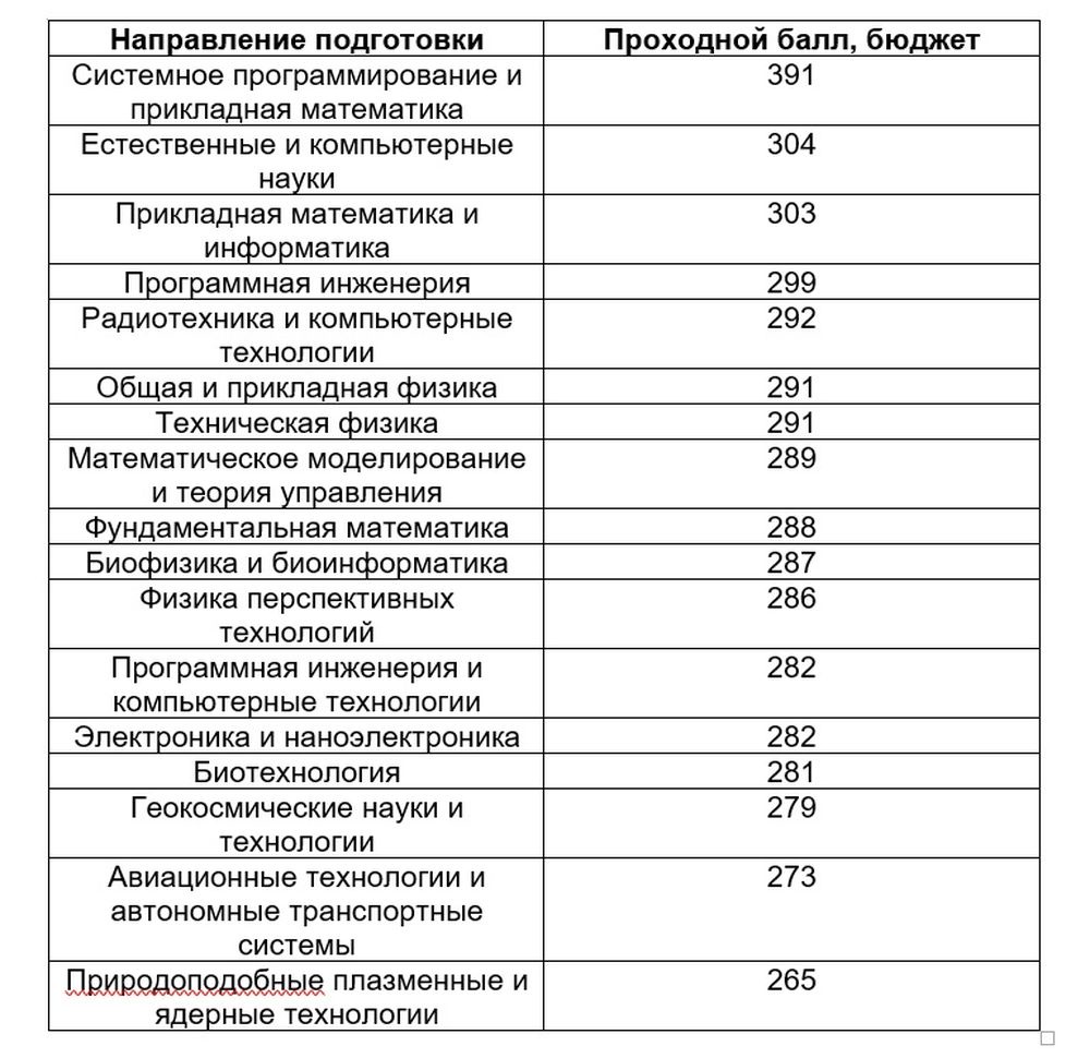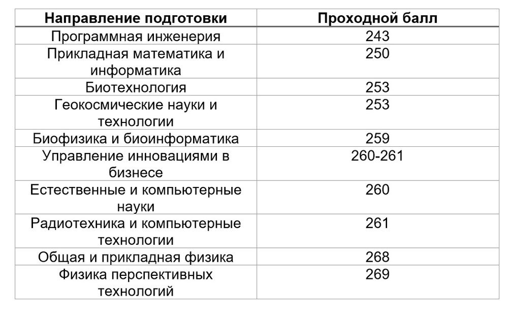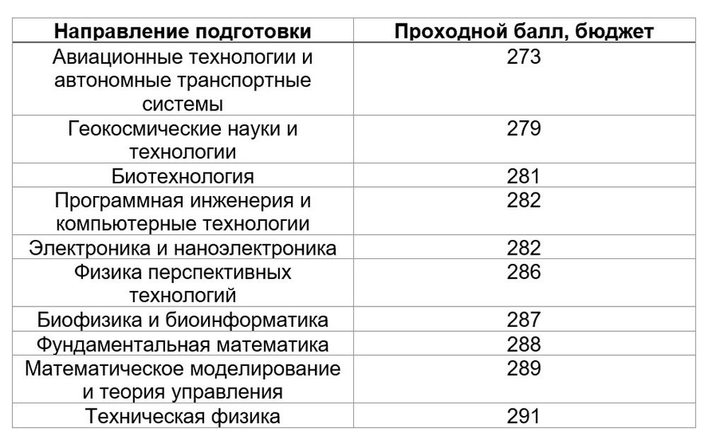 Топ-10 направлений с самым низким проходным баллом в МФТИ (договор)