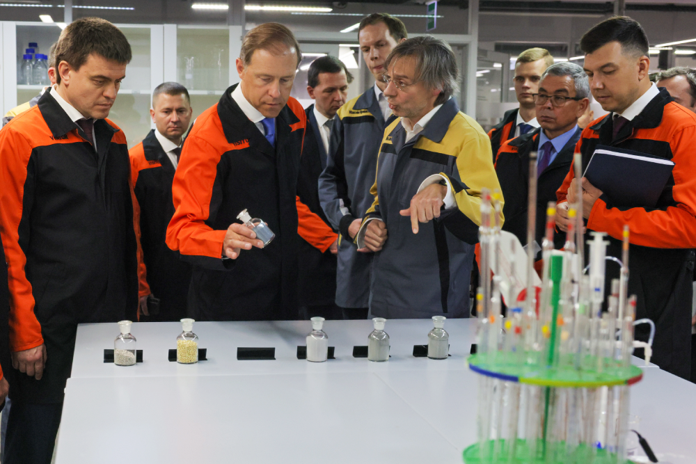 В компании "Красцветмет" Денис Мантуров и Михаил Котюков ознакомились с работой научно-технологического центра. В лабораториях и на опытно-промышленных участках проводятся исследования, эксперименты, испытания, совершенствуются действующие и разрабатываются новые технологии и продукты. В частности, Денису Мантурову и Михаилу Котюкову представили сорбционную технологию извлечения лития из гидроминерального сырья. Технология в два-три раза экономичнее традиционной и позволяет извлекать литий даже из сырья с экстремально низкой концентрацией металла - от пяти мг/литр.