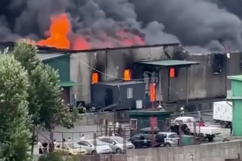 На второй записи можно увидеть сам горящий склад.