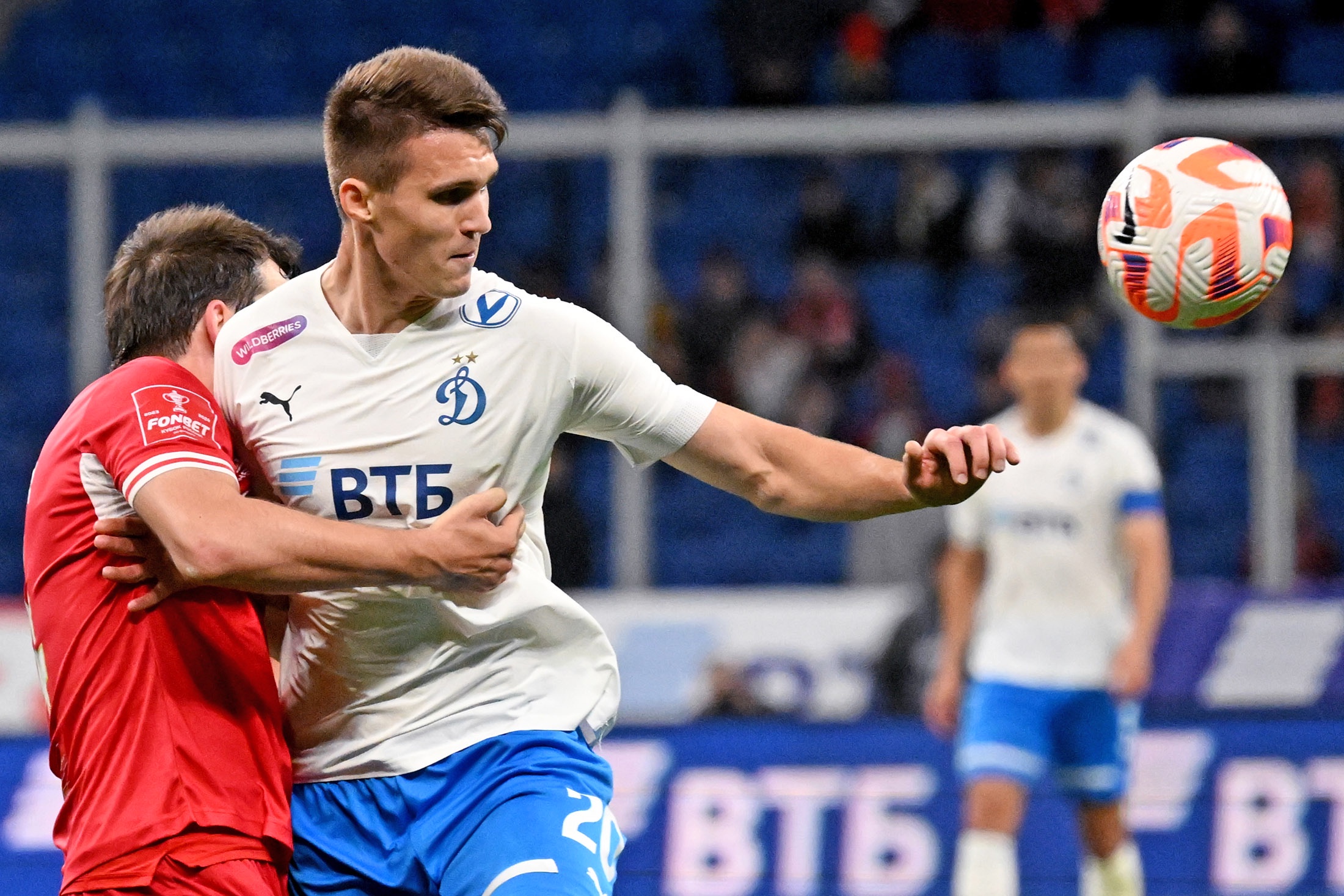 "Динамо" ответило на это голом со штрафного от Бителло, на днях продлившего контракт с "бело-голубыми". А в конце тайма "Динамо" вышло вперед. Маркиньос в борьбе с динамовцем упал, арбитр Егор Егоров нарушения не усмотрел и в ответном выпаде Бителло оформил дубль.