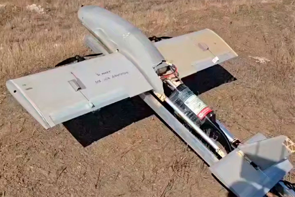 В социальных сетях, в том числе в Telegram-канале bmpd, впервые показана новая версия беспилотника-камикадзе самолетного типа "Молния-2". От более ранней модификации эта отличается тем, что управляется по защищенному от помех волоконно-оптическому кабелю. При этом его длина достигает четырех десятков километров.