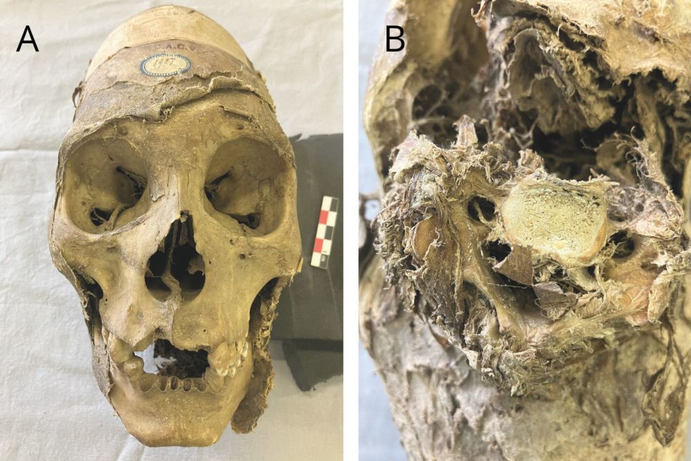 Интересно, что операция, которой подвергся этот человек, была проведена еще при жизни - следы заживления говорят о том, что он выжил. Размер отверстия в теменной кости достигает 37 на 31 миллиметр, что делает вмешательство весьма сложным для своего времени.