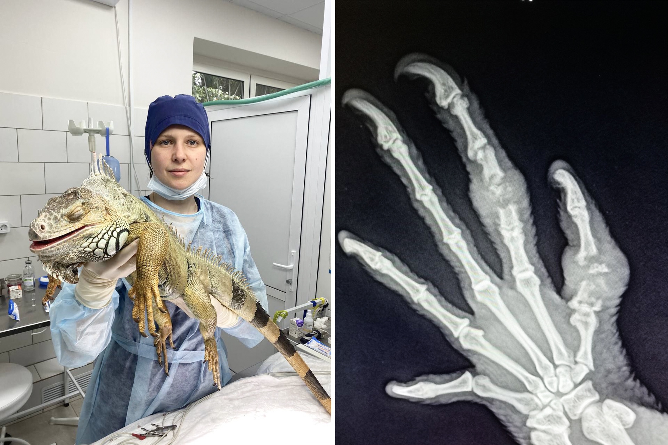Как сообщает специалист по экзотическим животным, хирург Зеленоградской государственной ветклиники Надежда Кузина, такое поведение характерно для этого вида животных в период гона. "Мы рекомендуем на время гона закрывать зеркала или любые отражающие поверхности, чтобы предотвратить такие травмы", - порекомендовала она. И добавила, что у игуаны начался некроз тканей. Нужна была срочная операция. К сожалению, пальцы пришлось частично ампутировать. Применяли ингаляционную анестезию при операции. Сейчас игуана на реабилитации. Через месяц животное повторно осмотрят врачи.