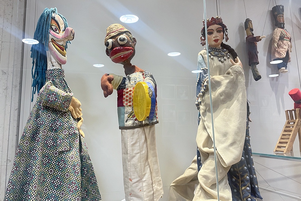 Еще в рамках фестиваля в фойе Большого зала театра им. Образцова открылась выставка "Культурные пересечения. Театры кукол стран БРИКС+", которая будет работать до конца 95-го театрального сезона. Собирать экспозицию, посвященную таким разным и таким похожим куклам из разных стран, помогали студенты МАХУ.