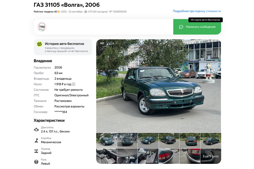 Продавец просит за свой уникальный седан не так и дорого, учитывая его первозданное состояние - 537 000 рублей. Учитывая, что "Волги" стали весьма популярными в последнее время, этот экземпляр может отлично дополнить музейную или частную коллекцию.