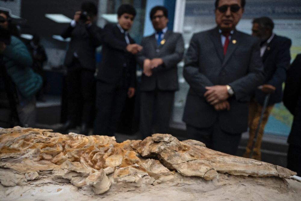 В Лиме представили необычную находку - почти идеально сохранившийся окаменелый скелет доисторической морской свиньи. Экземпляр был найден в пустыне Окукахе, знаменитой своими палеонтологическими богатствами.