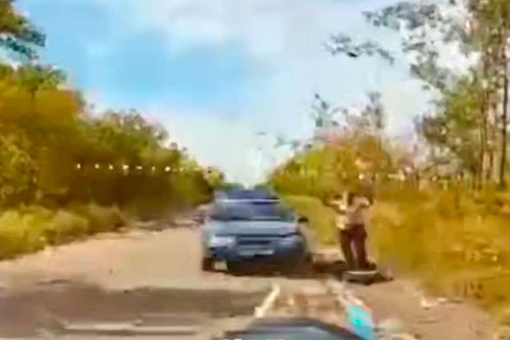Как оказалось, пожилой водитель менял поврежденное колесо. В результате дрон неспеша пролетел мимо и продолжил патрулирование.
