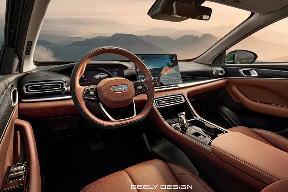 На официальных рендерах салон выполнен в темно-коричневой гамме. В центре - "парящий" экран мультимедиа диагональю 14,6 дюйма. Несмотря на минималистичный дизайн, полностью отказываться от физических кнопок не стали: панель с ними размещена под дисплеем мультимедиа.