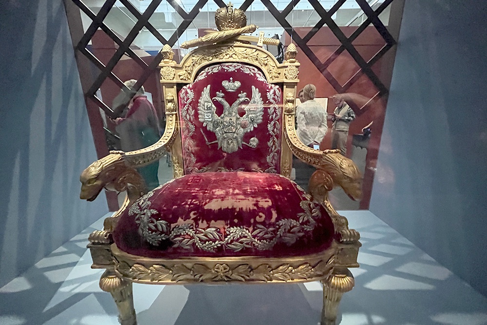 Не пройдите мимо тронного кресла из зала правительствующего Сената. Оно расшито золотом, бархатом и украшено резьбой и серебряными нитями.